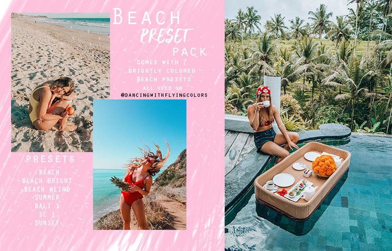 This whole pack comes with 7 different beach presets. I use these presets when I travel to tropical destinations or if I need to make LA beaches look like tropical destinations. They are fun bright and very colorful and that's what all my instagram and blog photos are all about. I used a lot of these filters when I was in Bali last year and some are brand new ones that I just made.